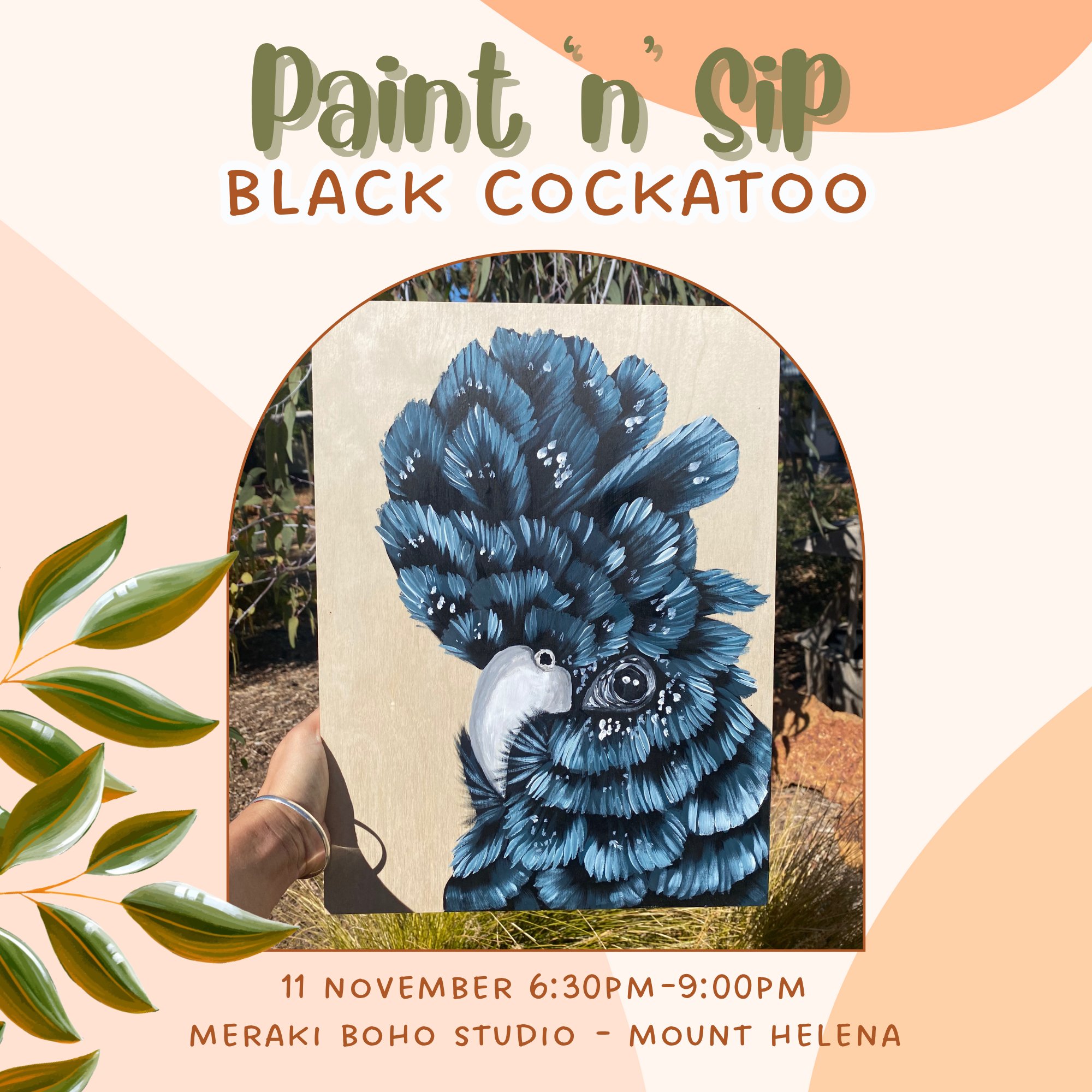 Join me at my cosy home studio for a relaxed evening of painting, sipping and a whole lotta laughs as we bring these iconic black cockatoos to life! We’ll be painting on gorgeous wooden panel boards (yes, fancy ones!), so your masterpiece will be ready to hang and squawk about. No experience needed – just bring your vibes and your vino. Let’s get artsy!